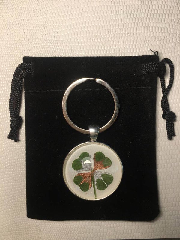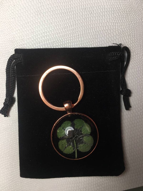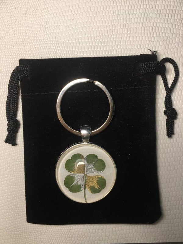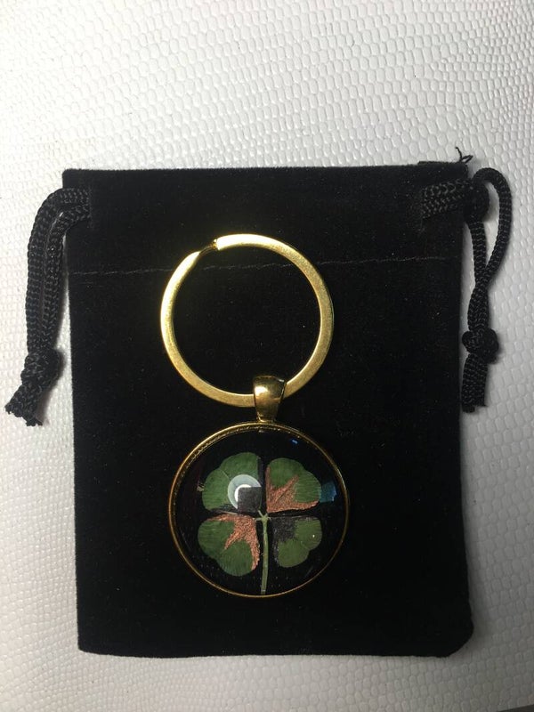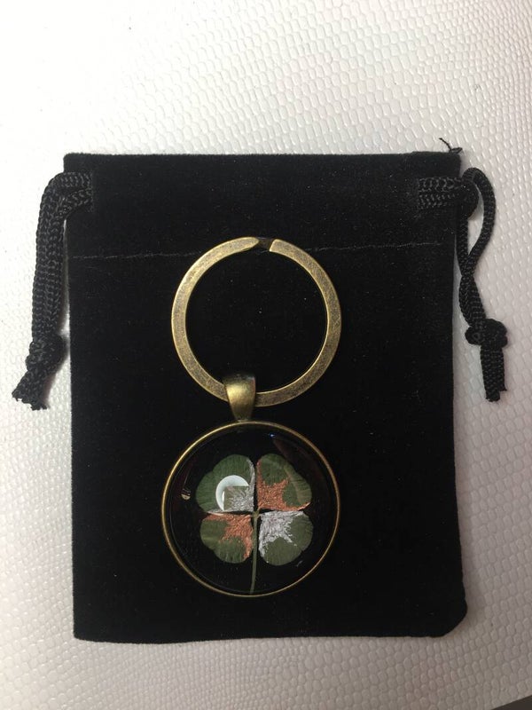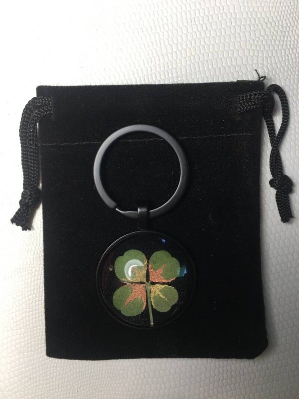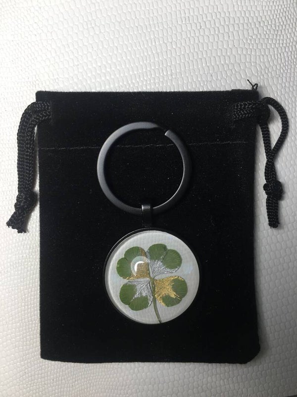 Véritable trèfle à 4 feuilles serti sur votre création (avec certificat d'authenticité)