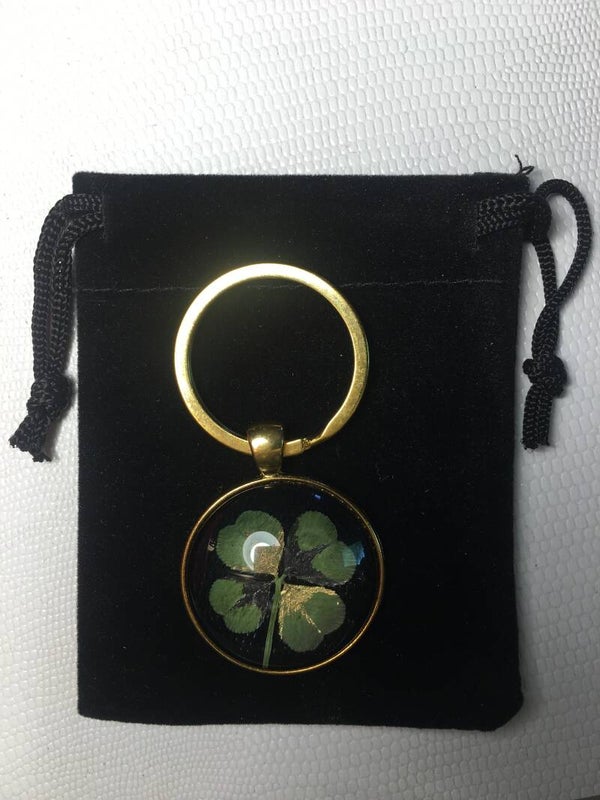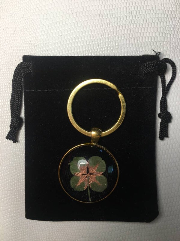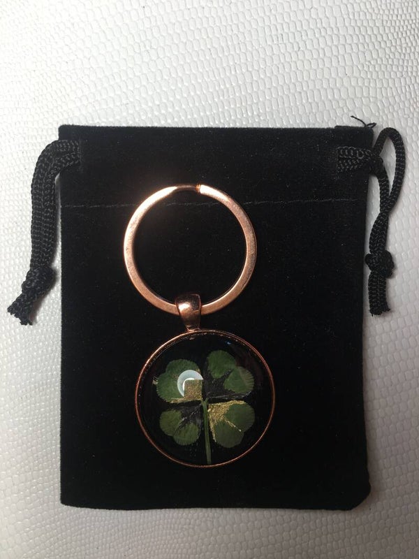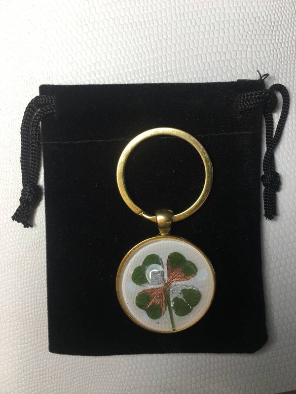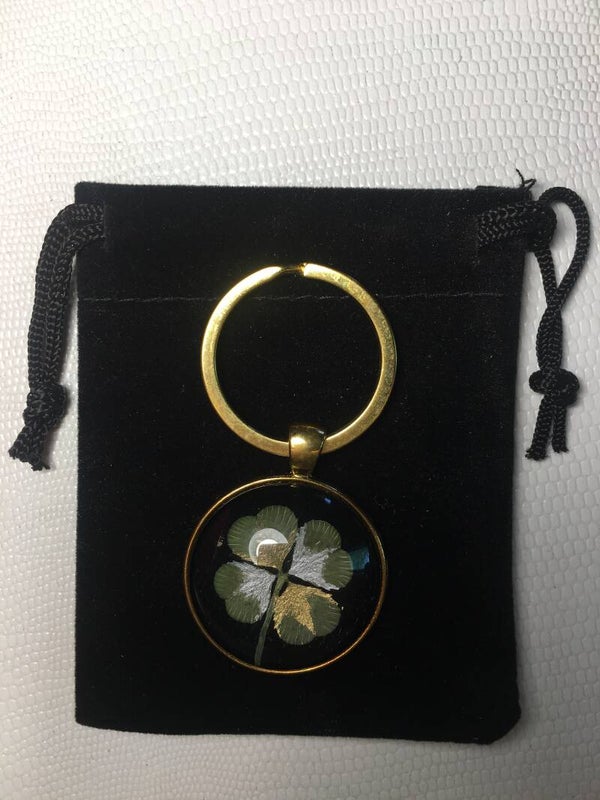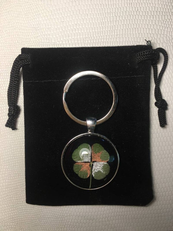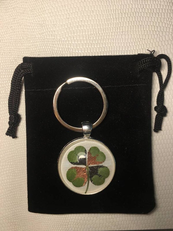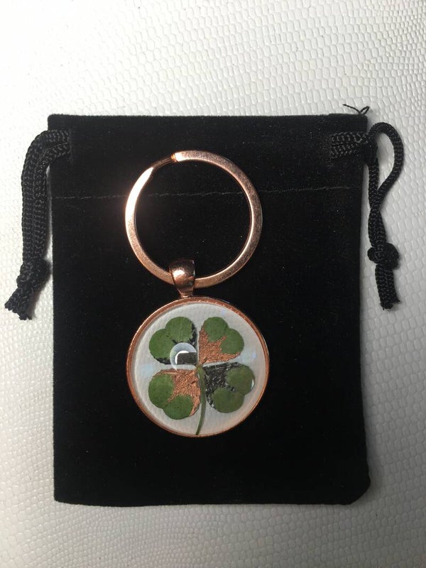 Véritable trèfle à 4 feuilles serti sur votre création (avec certificat d'authenticité)