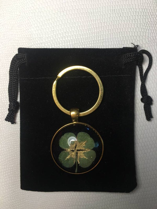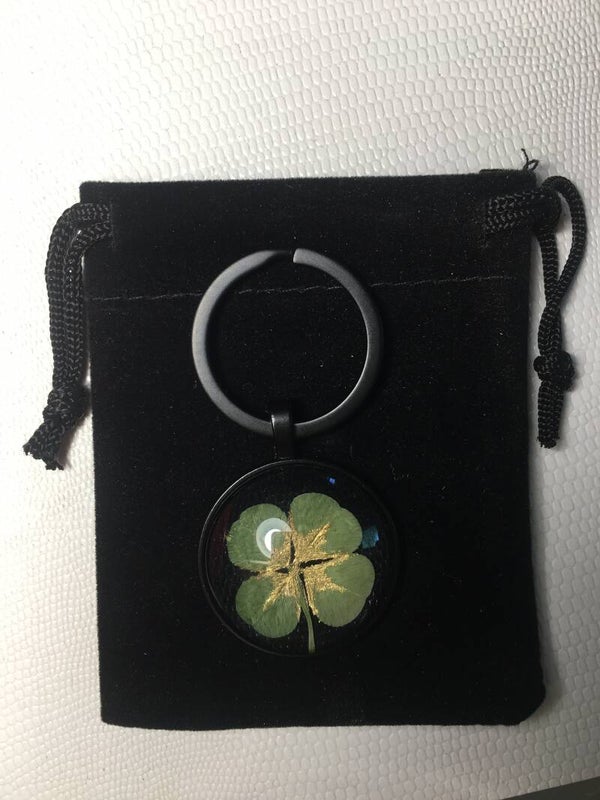 Véritable trèfle à 4 feuilles serti sur votre création (avec certificat d'authenticité)